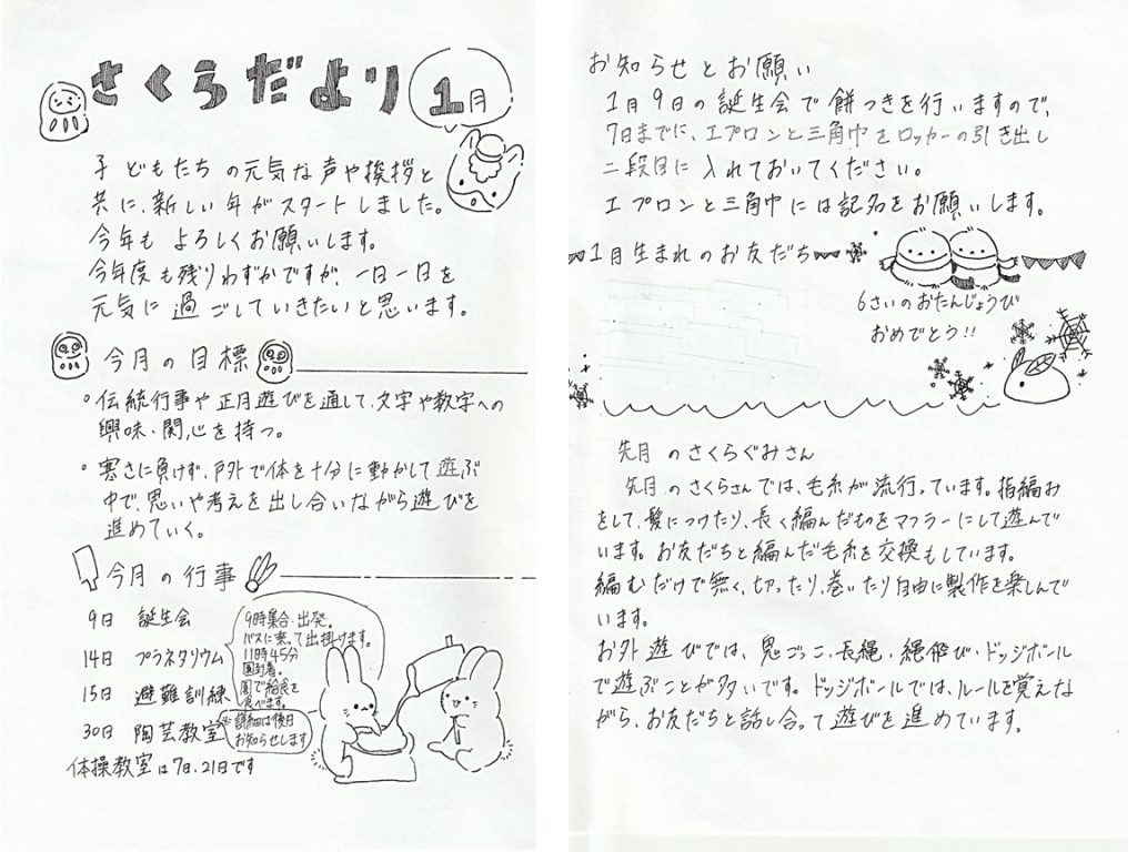 令和8年1月 さくらぐみのおたより