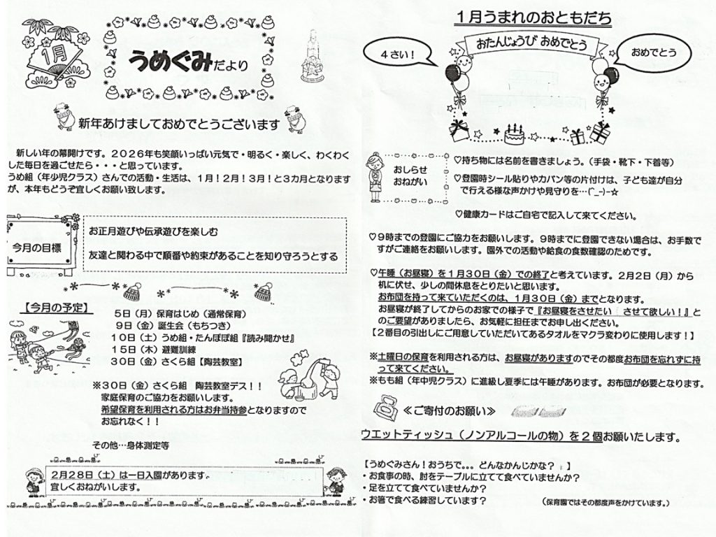 令和8年1月 うめぐみのおたより