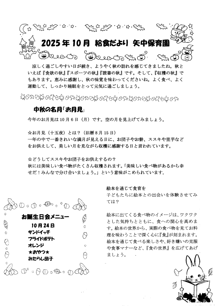 令和7年10月 きゅうしょくだより