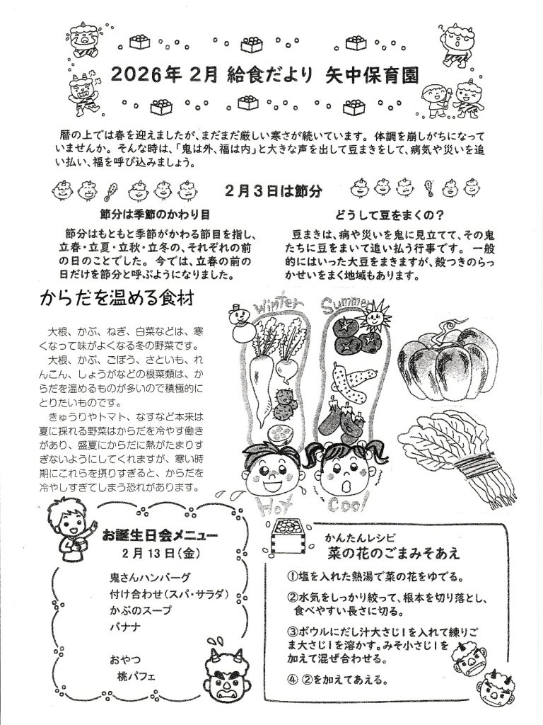 令和8年2月 きゅうしょくだより