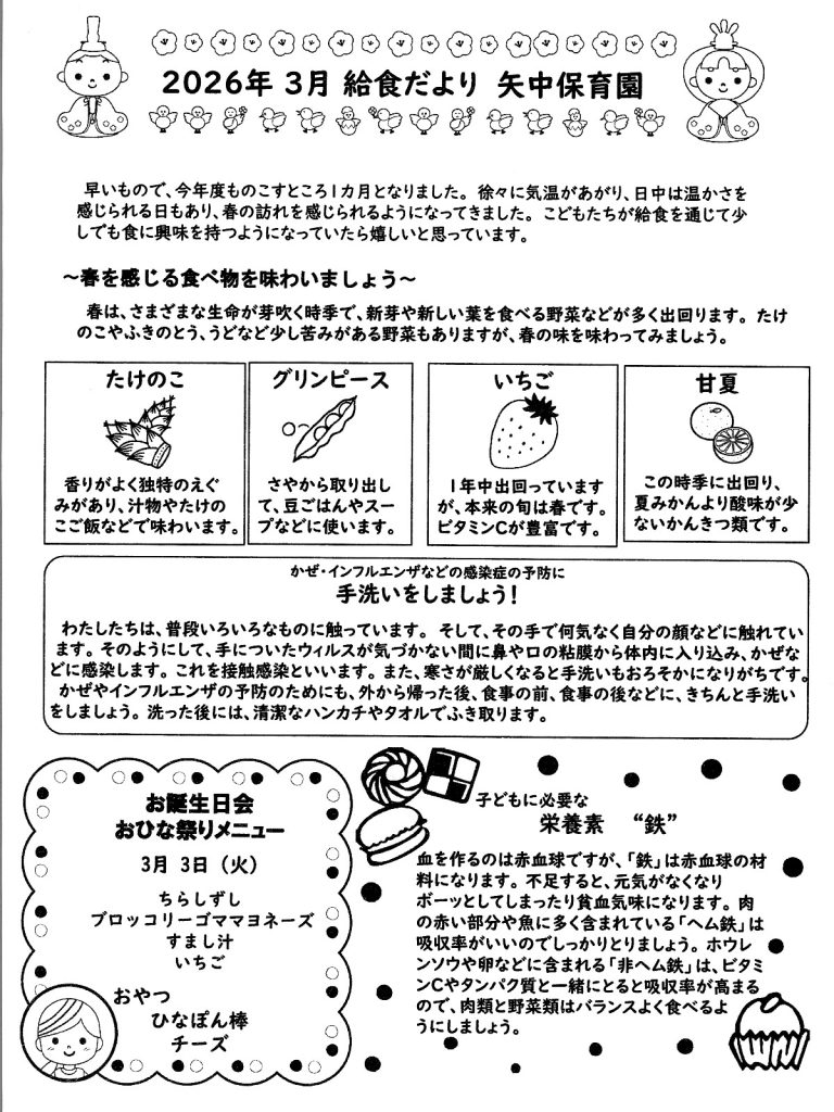 令和8年3月 きゅうしょくだより